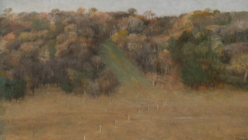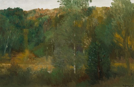 Verso: Inscribed "EARLY AUTUMN, NEW FOREST RICHARD EURICH RA. 1984 £3800"; label from RA Summer exhibition 1985 with title ; Bruton Gallery label from unknown exhibition; inscribed on frame with address of The Fine Art Society.