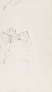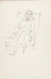 Camberwell England London chair figure sheet sitting throw women woman femaleProbably painted from sketches done while Richard was teaching at Camberwell School of Art in London. See sketches below which are not sources for this painting, but have some similarities.